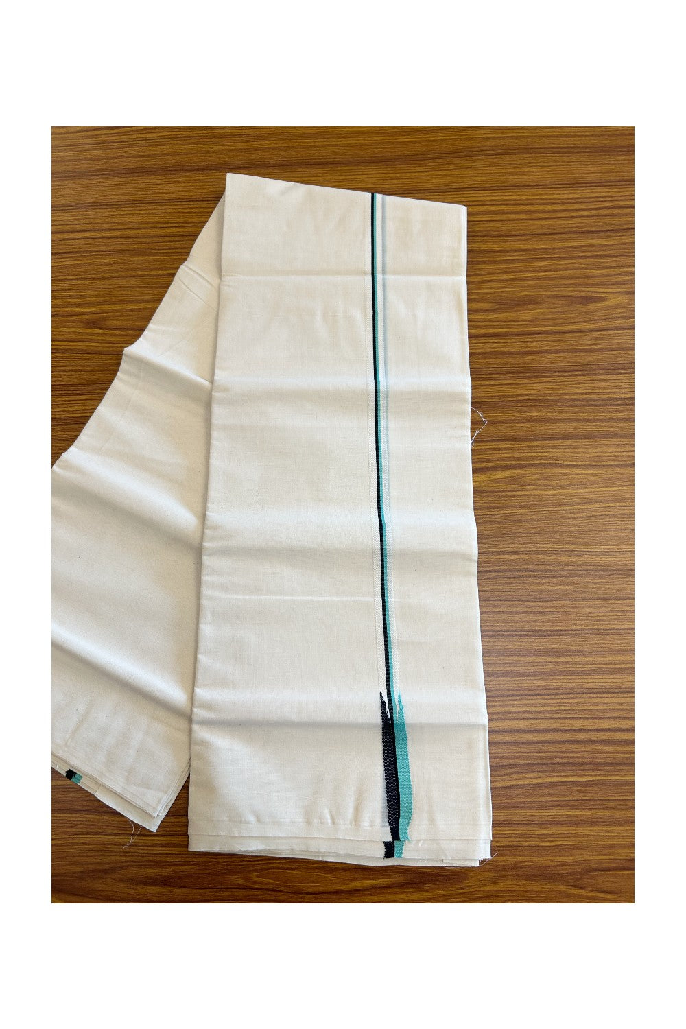 29% Discount! KaithariKada Balaramapuram 100% Cotton Double Off white - (Unbleached) Mundu/Dhoti-100x100 - Puliyilakkara Turquoise Green & Black Chutty - 3KK125ASH