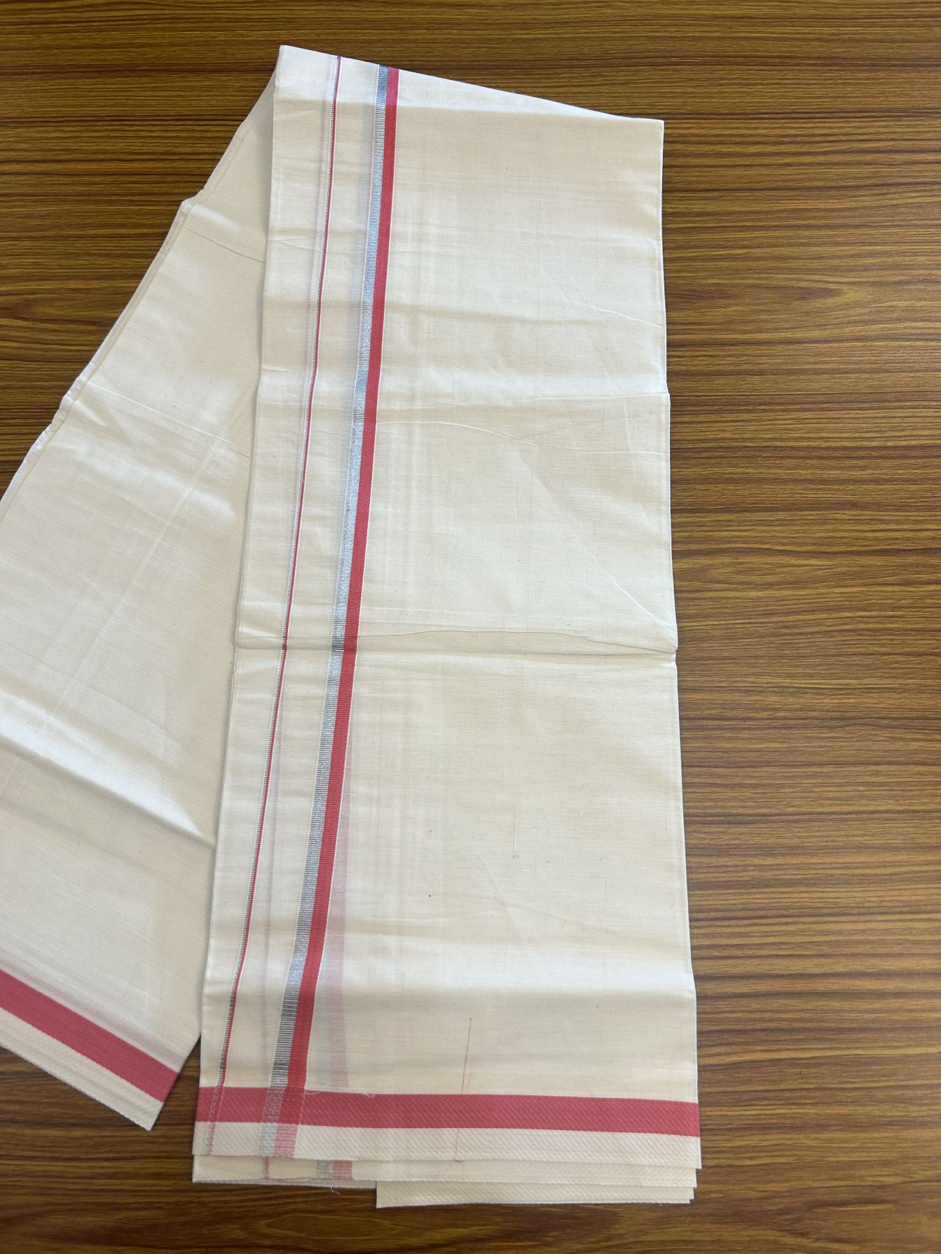 9% Discount! KaithariKada Balaramapuram 100% Cotton Single Off White - (Unbleached) Mundu/Dhoti - 100x80 - 0.5 inch Silver Kasav & Red Pink kara (2 meter / 4 muzham) - 60 KK52313 PMC