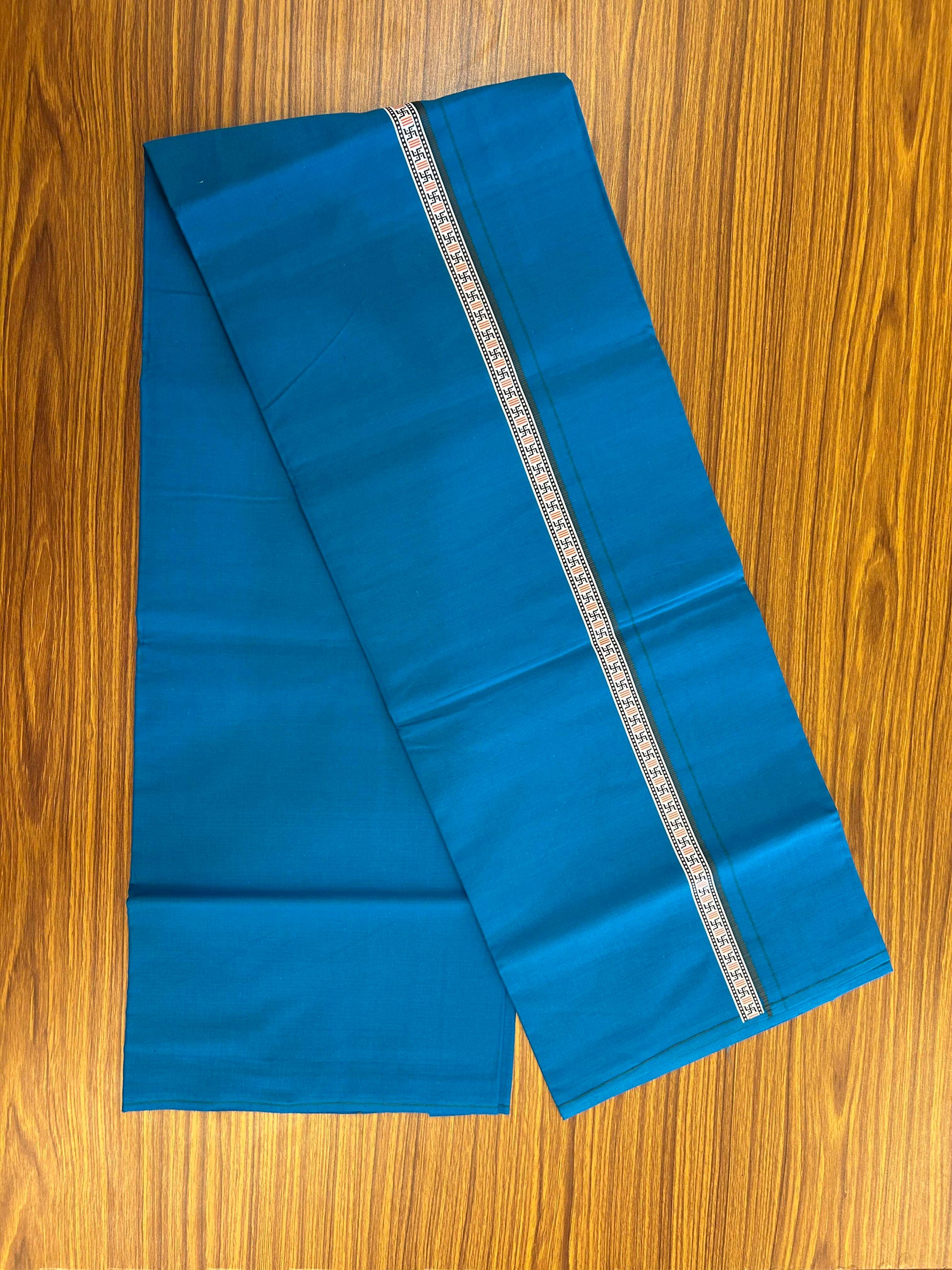 39% Discount! Kaitharikada - Pure Cotton - Single Kaily / Lungi - (60s) - 1 inch Grey & Multi colour Pattern Printed Kambi kara with Sky Blue colour body (2 meter / 4 muzham) - 8 KK8043 GAN