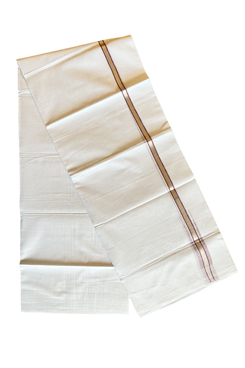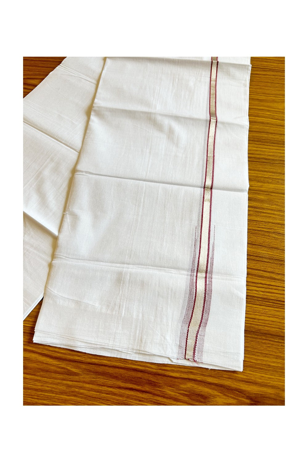 8% Discount ! Kaitharikada Balaramapuram 100% Cotton PURE WHITE Double Mundu/Dothi- 0.5 inch Silver Kasavu & Maroon Striped Chutty Kara - 30KK5032GAN