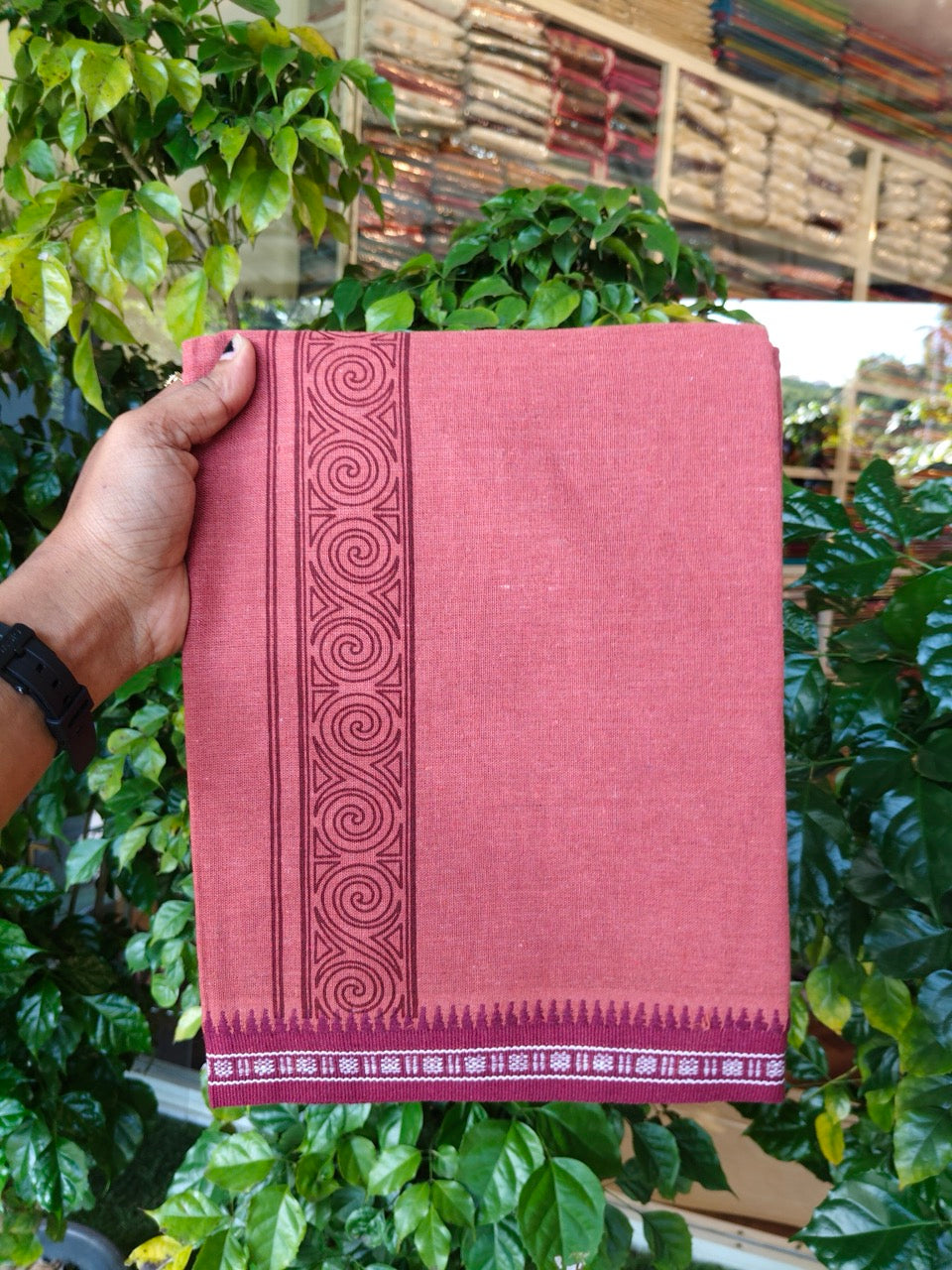 8% Discount!!! Kaitharikada 90% cotton 5 % Polyster Single KAVI - Kaily / Lungi - 3.25 inch Maroon Tribal Kuppadam Border (2 meter / 4 muzham) - 9KK8027 AS