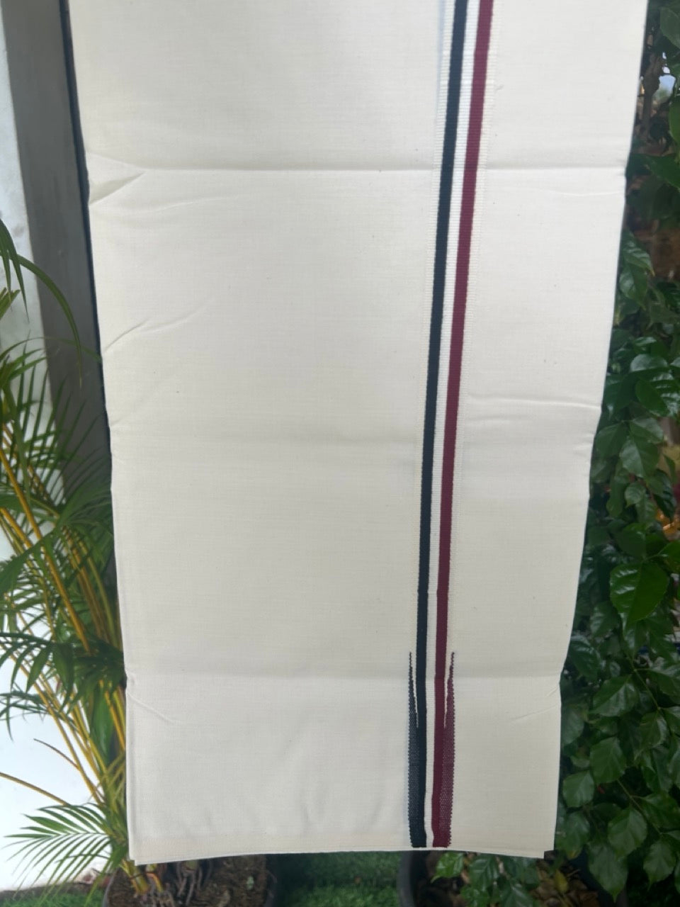 Admk Veshti 29% Discount ! KaithariKada Balaramapuram 100% Cotton Single Off White (Unbleached) Mundu/Dhoti- 100X100- 1 inch Puliyilakkara Maroon & Black Chutty Kara (2 metre / 4 muzham) - 10KK5168ASH