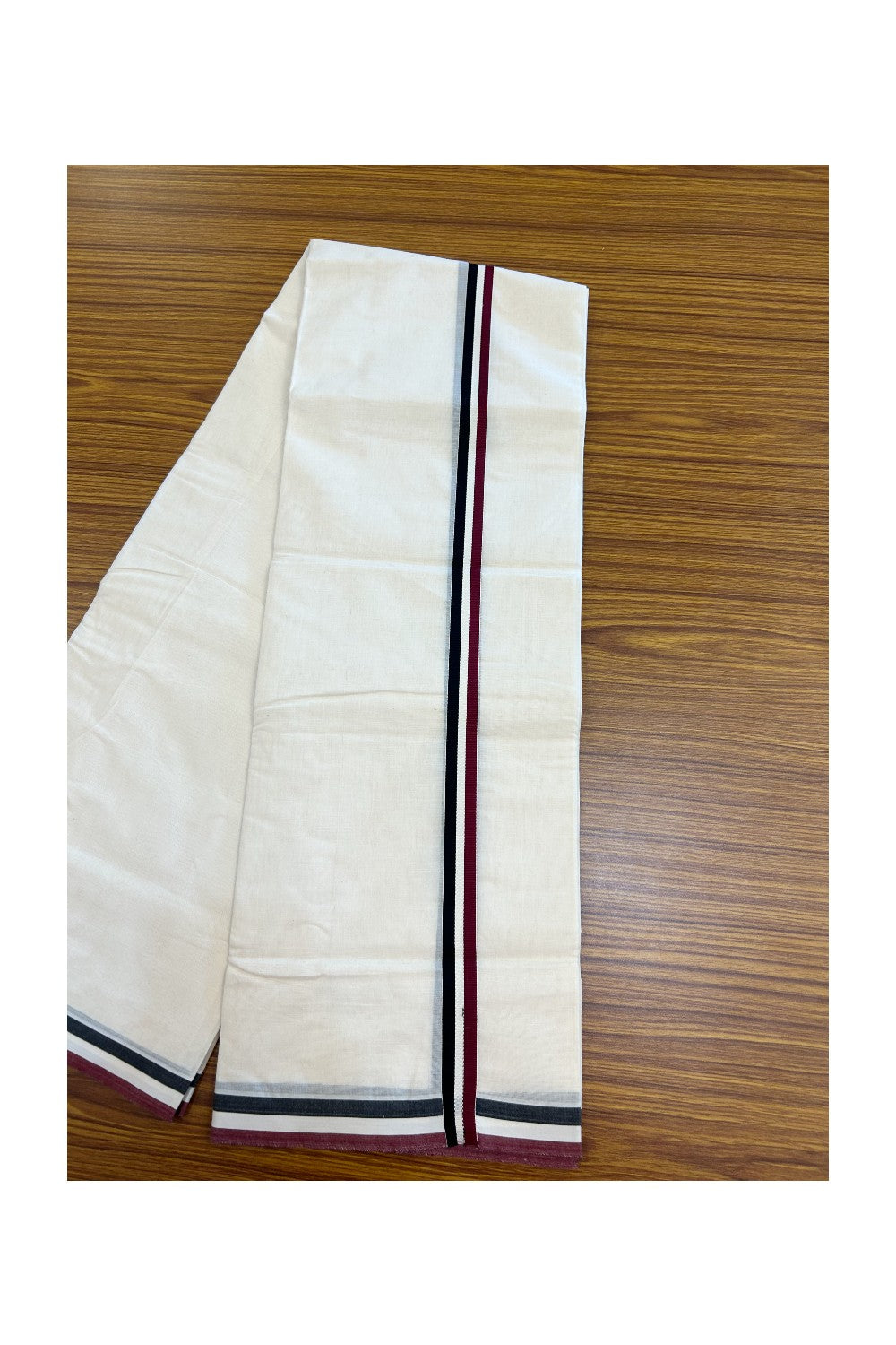AIADMK VESHTI - 19% DISCOUNT! KaithariKada 100% Cotton off white Double - (Unbleached) Mundu/Dhoti - 100X100 - 0.75 inch Black White & Maroon kara 3.75m (8 muzham)- 6KK5187ASH