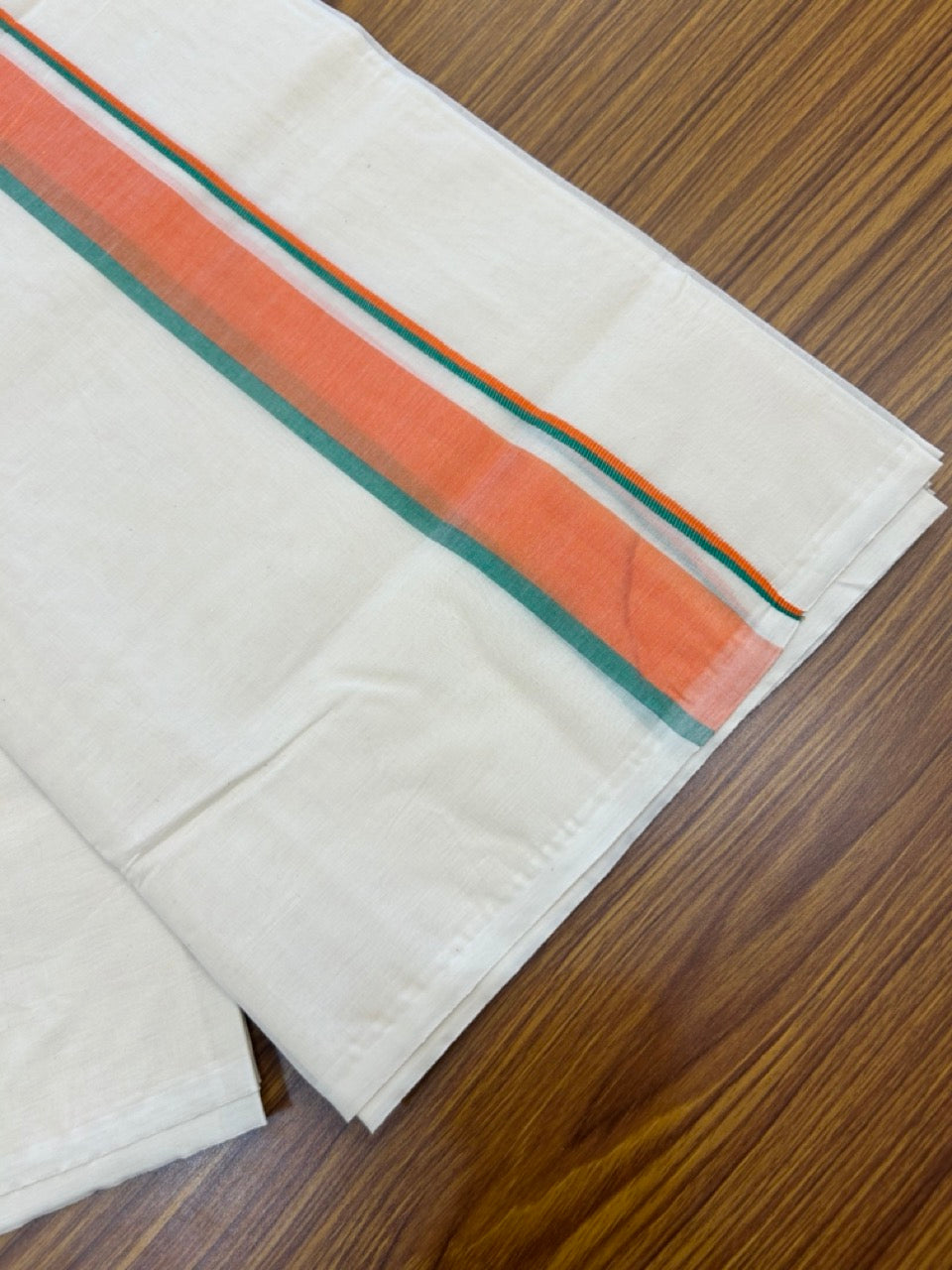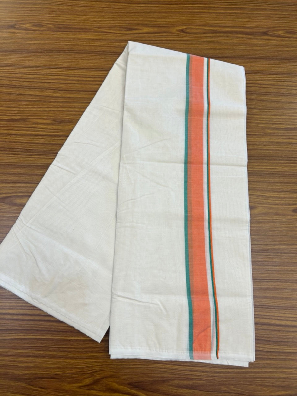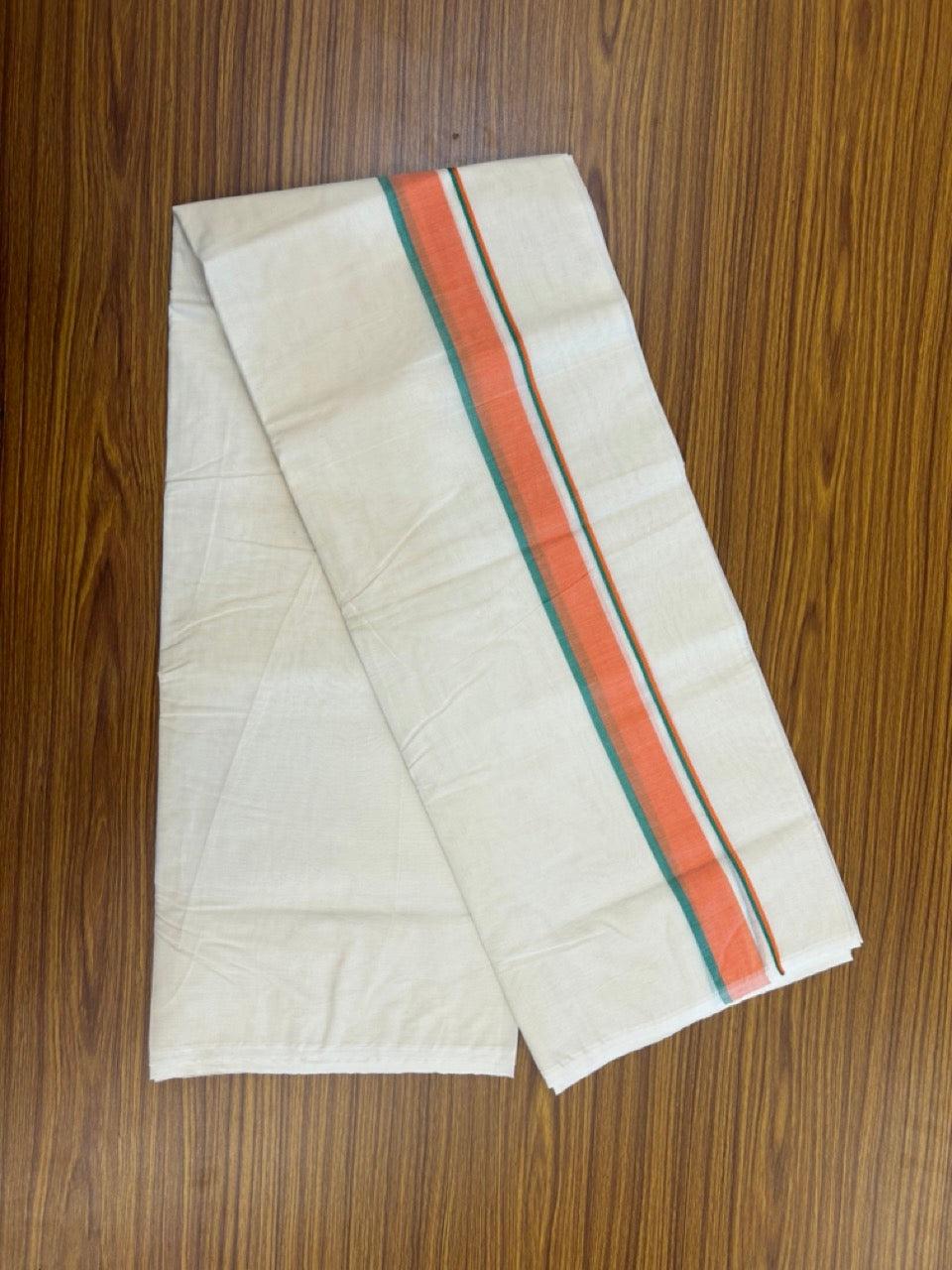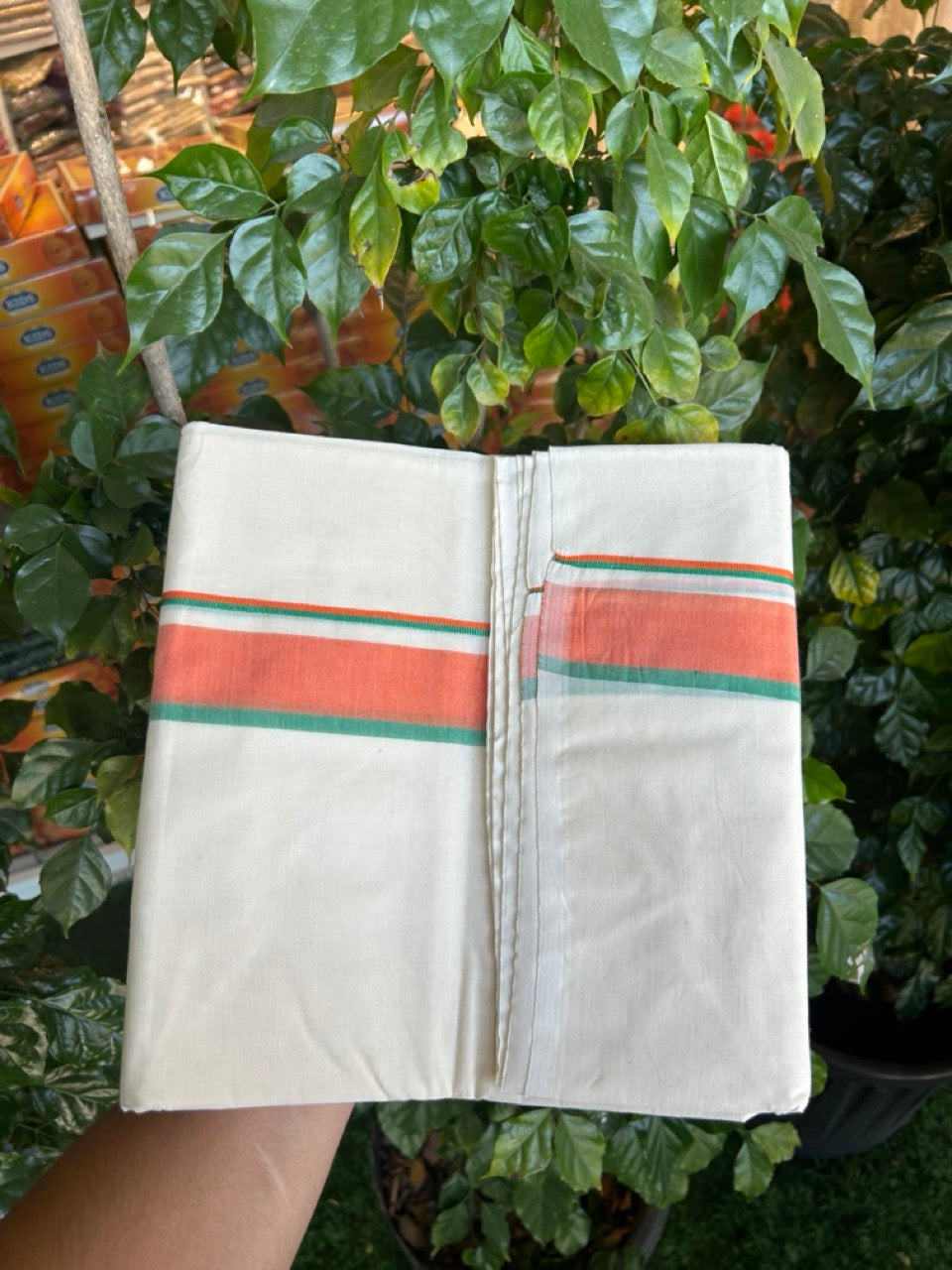Bjp Veshti - 20% Discount! KaithariKada 100% Cotton Off White Double - (Unbleached) Mund/Dhoti - 100X100 - 1.5 inch Orange & Green Shaded Kara 4 mtr (8.5 muzham) - 29 KK5268 ASH