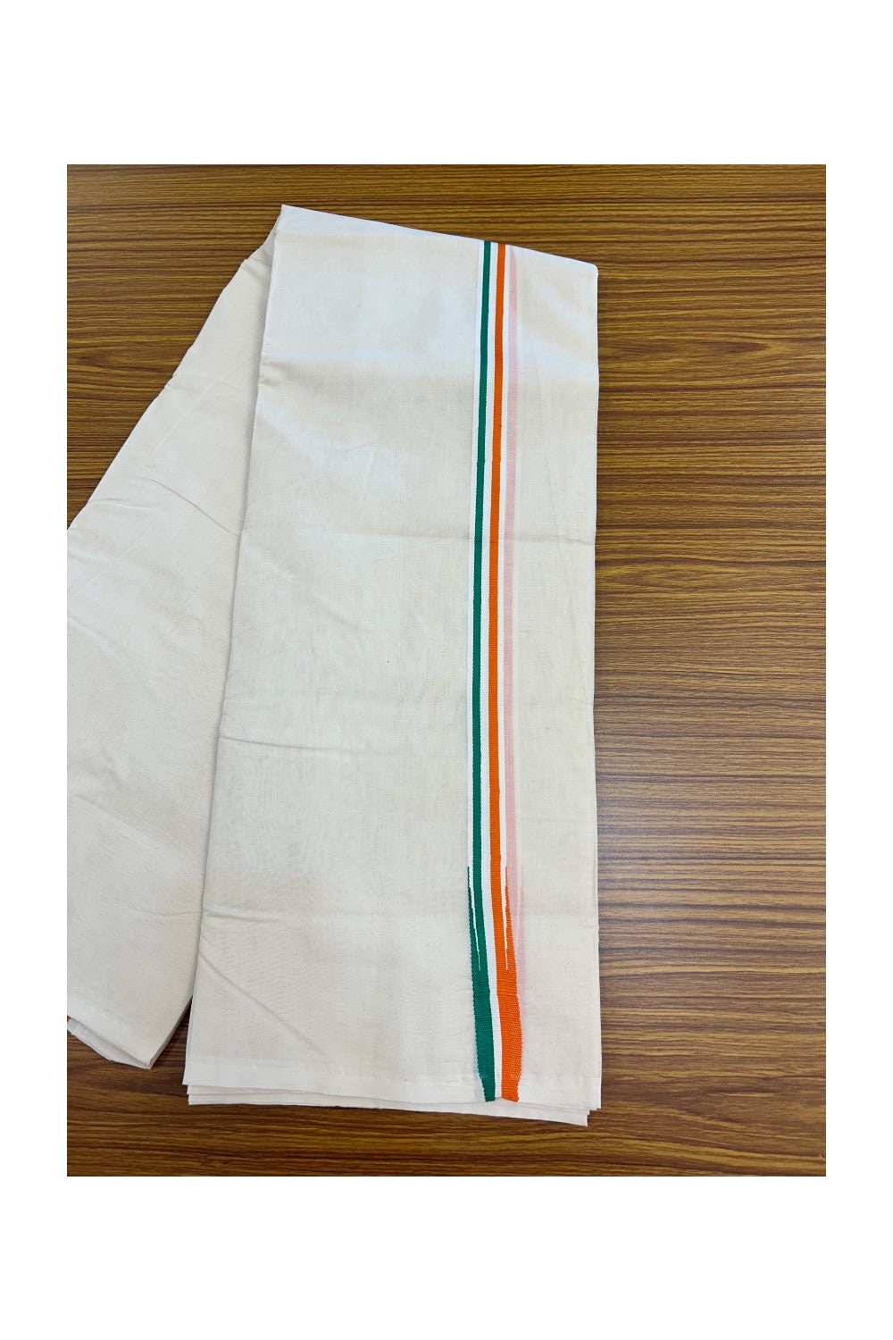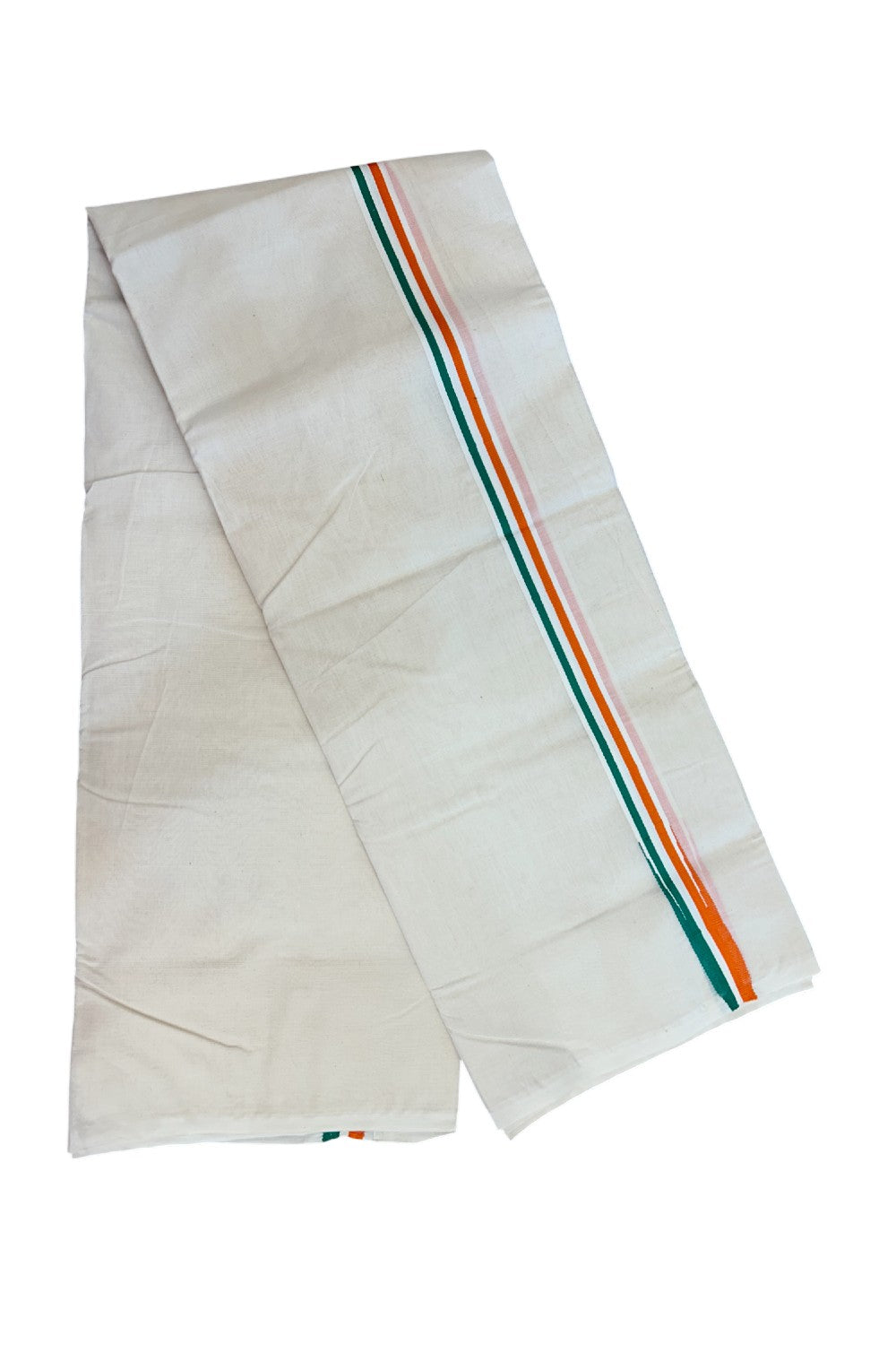 Congress Veshti - 20% Discount! KaithariKada 100% Cotton Off White Double - (Unbleached) Mundu/Dhoti - 100X80 - 1 inch Puliyilakkara Orange White & Green Chutty Kara - 4KK5204 ASH