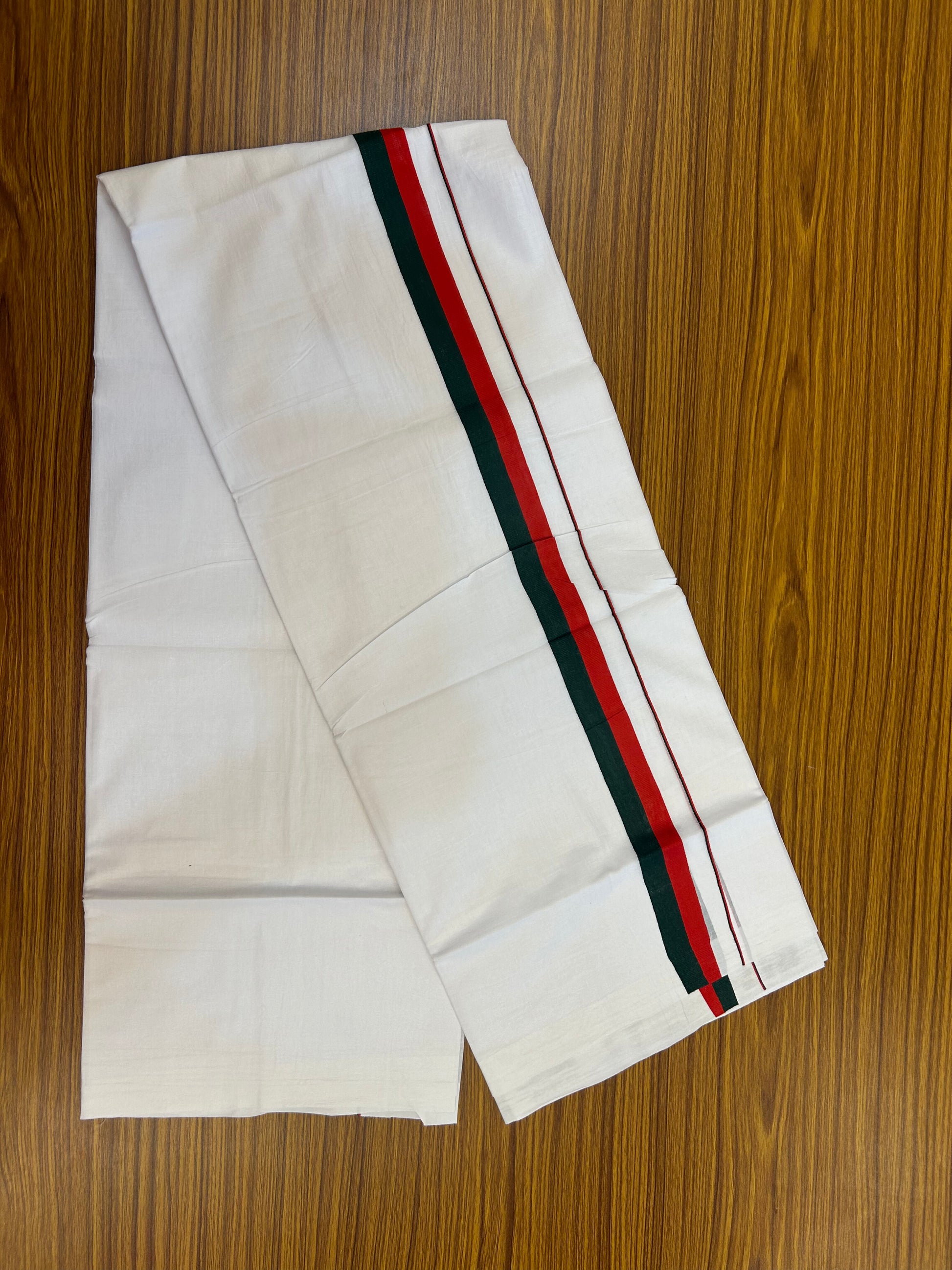 Sdpi Veshti - 20% Discount ! KaithariKada 100% Cotton Pure White Double Mundu/Dhoti - 100X80 - 1 inch Maroon & Green kara 3.70 mtr (8 muzham) - 5 KK5372 PMC
