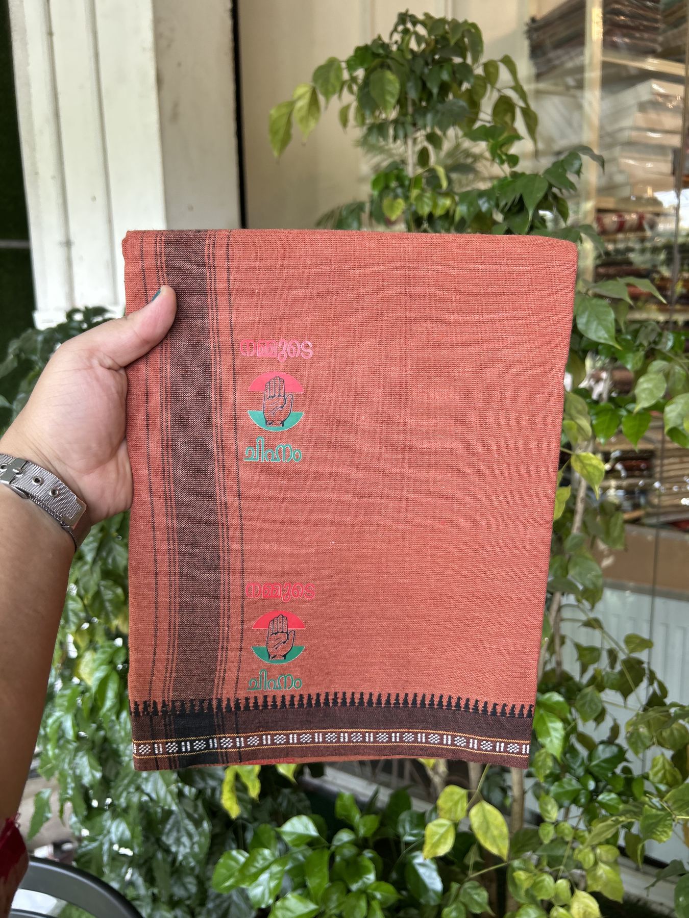 Congress Veshti - Kaitharikada - Single Kaily / Lungi - Polyster + Cotton - 20s twisted - 3.5 inch Black striped Congress Kaipathi Printed Kuppadam Border with Kavi colour body (2 meter / 4 muzham) - 13 KK8045 GAN