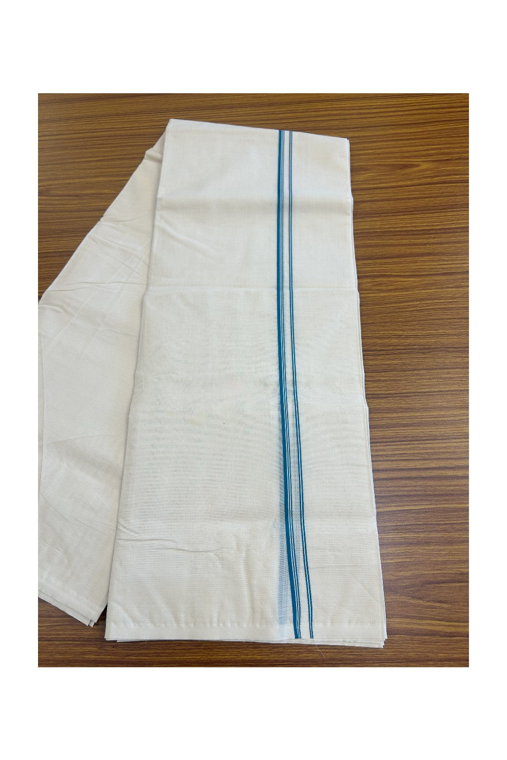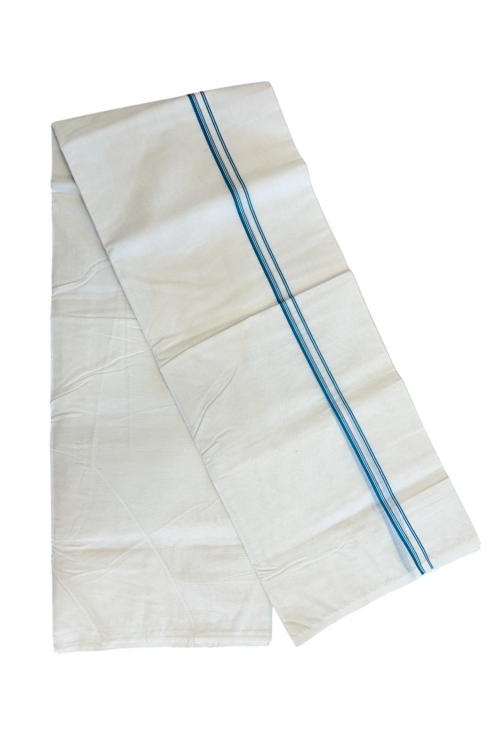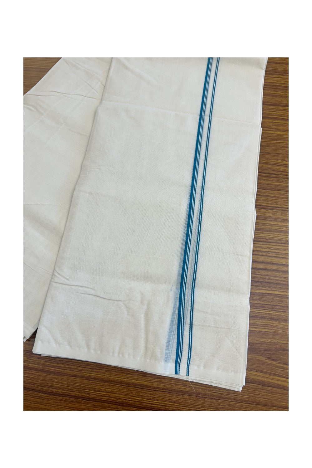 10% Discount! KaithariKada Balaramapuram 100% Cotton Double Off white - (Unbleached) Mundu/Dhoti - 100X100 - Peacock Green & Stripes 2.cm Kara.- ASH010.