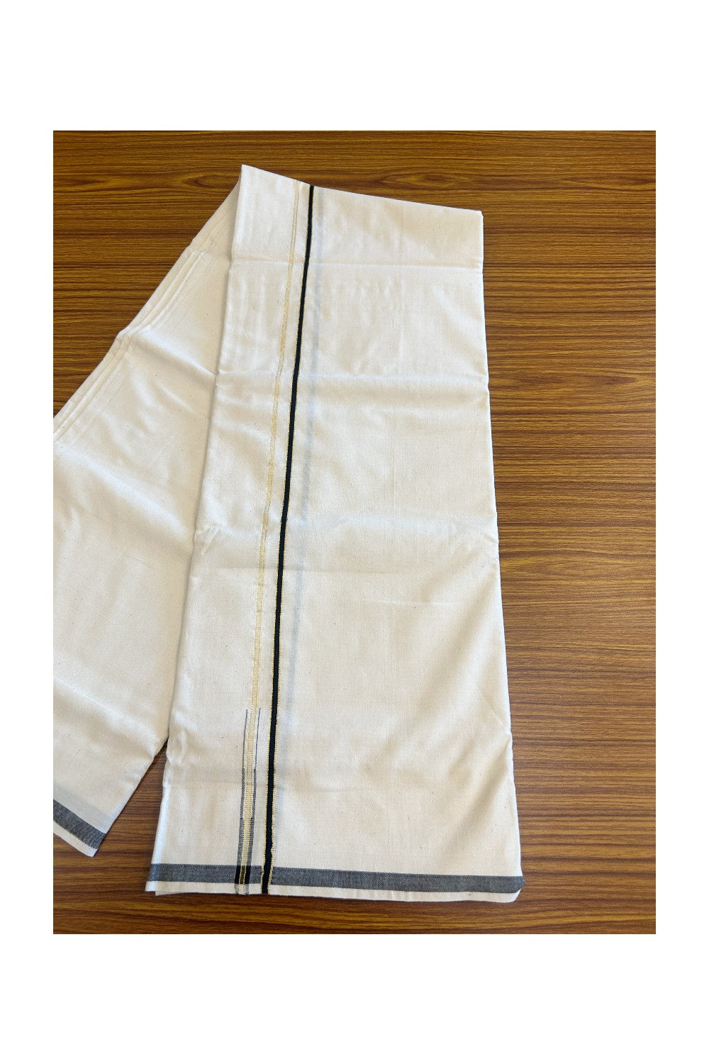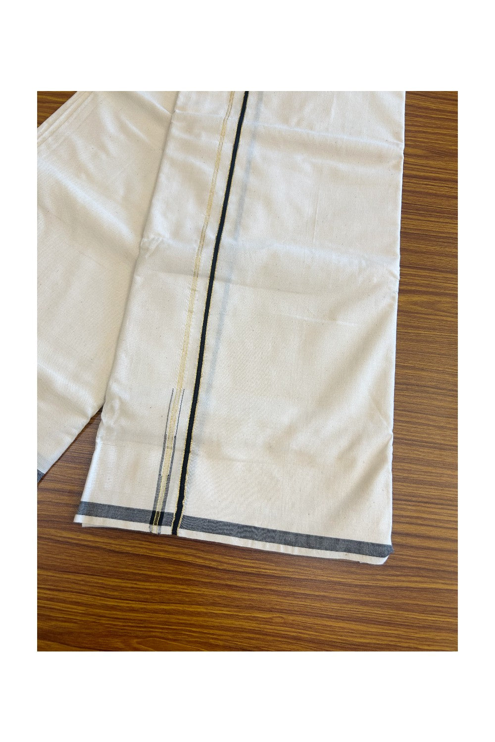 25% Discount ! KaithariKada 100% Cotton Balaramapuram Handloom off white (Unbleached) Single Mundu/Dhoti - 0.5 cm (2 meter / 4 muzham) Black Kara and Kasavu puliyilakkara - 4.