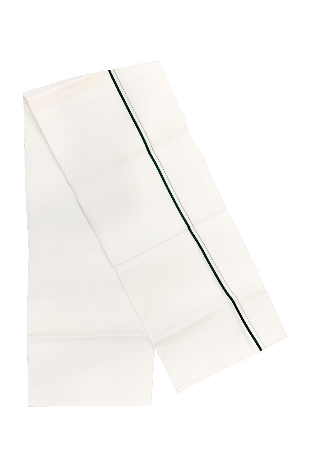 25% Offer! KaithariKada 100% Cotton Balaramapuram Handloom Single Pure White Mundu/Dhoti - 1.5 cm (2 meter / 4 muzham) Deep Green Kara - 49KAI.