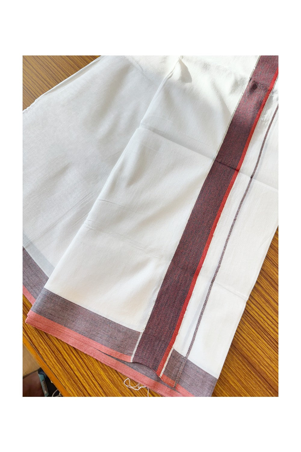 24% Discount!! Kaitharikada Balaramapuram 100% Cotton Pure White Double Mundu./Dothi-100x80 - 2.25 Inch Red Green + Silver Striped Cotton Kara - 66KK45VAS.