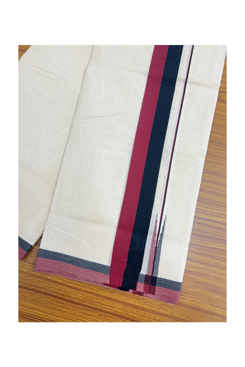 DMK Veshti - 20% DISCOUNT! KaithariKada 100% Cotton off white Double - (Unbleached) Mundu/Dhoti - 100X100 - 2 inch Puliyilakkara Black & Maroon Chutty kara - 1KK5138ASH