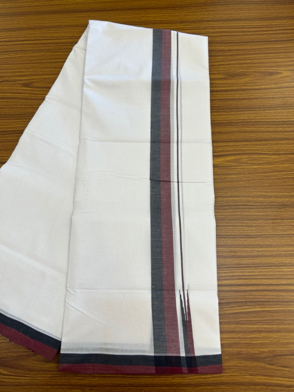 Dmk Veshti - 20% Discount! KaithariKada 100% Cotton Pure white Double Mundu/Dhoti - 100X100 - 1.5 inch Puliyilakkara Black & Maroon Shaded Chutty kara - 42 KK5297 ASH
