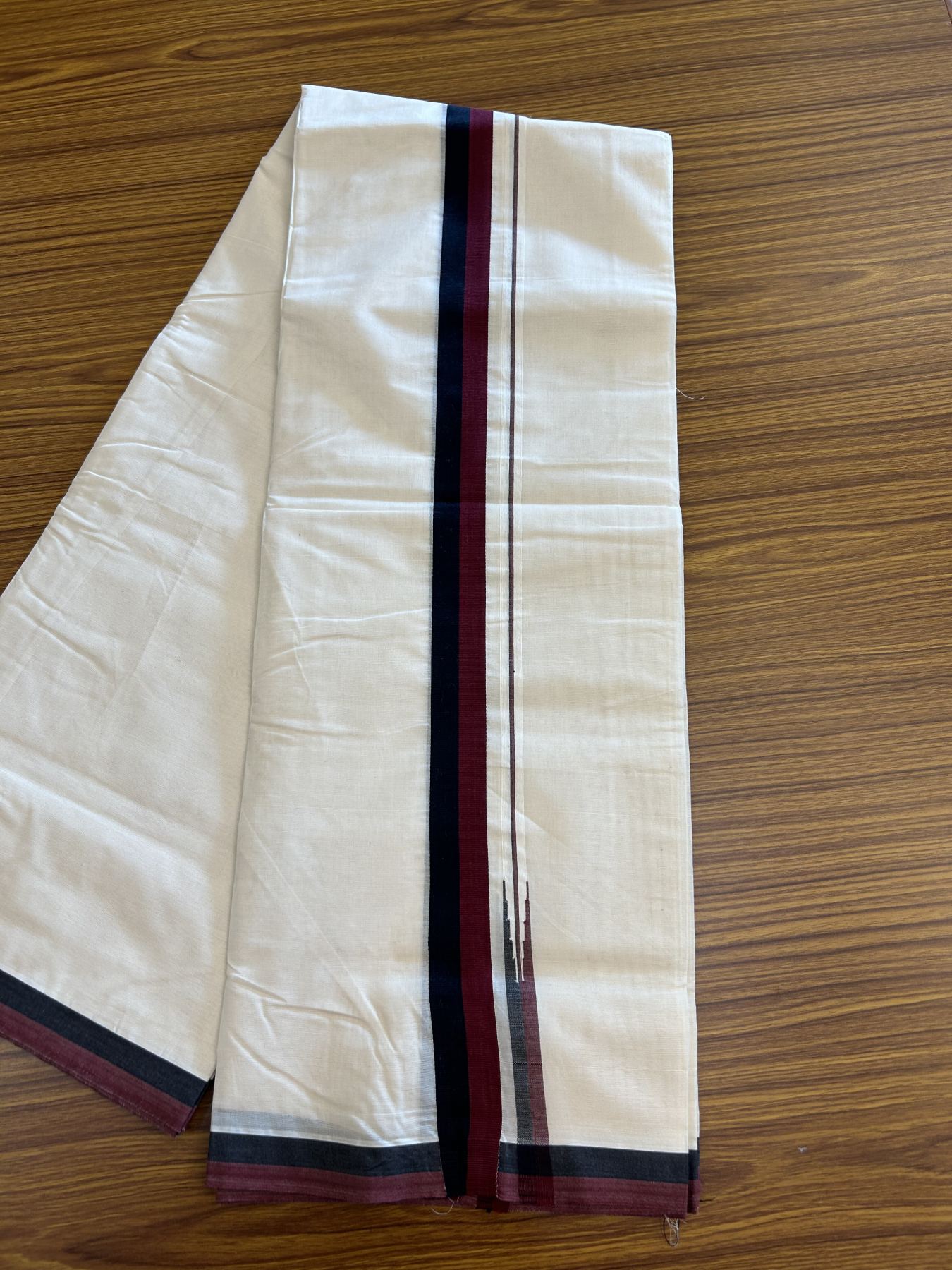 Dmk Veshti - 20% Discount !! KaithariKada Balaramapuram Double Off White - (Unbleached) Mundu/Dhoti - 100X100 - 1.25 inch Puliyilakkara Maroon & Black Chutty Kara 4 meters (8.5 Muzham) - 2 KK5330 ASH