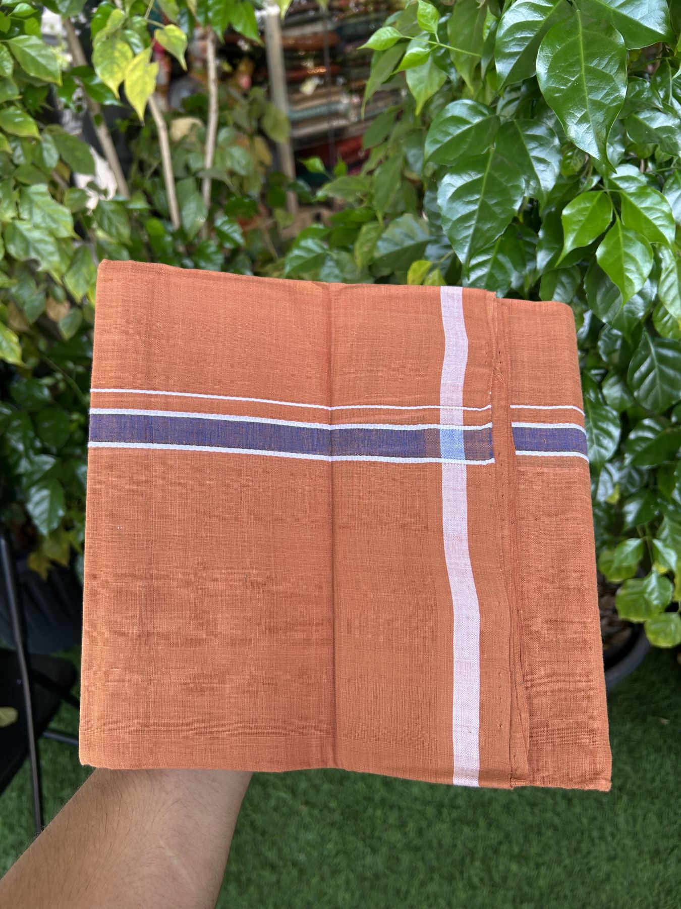 Kerala Handloom Single Hallmarked - 10% Discount !! KaithariKada 100% Pure Cotton - Mundu/Dhoti 2 cm Blue & White Shaded Kara with Kavi colour Body - (2 meter / 4 muzham) - 19 KK8048 ELA