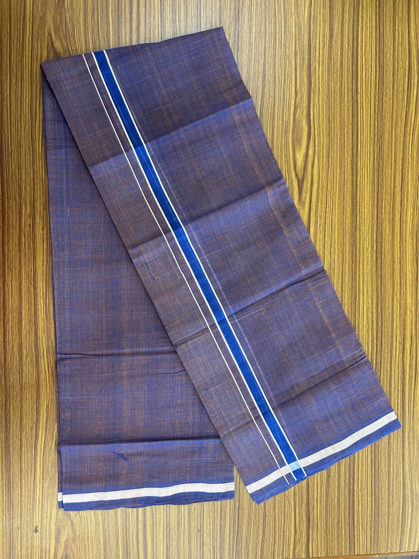 Kerala Handloom Single Hallmarked - 10% Discount !! KaithariKada 100% Pure Cotton - Mundu/Dhoti Brick Red & Blue Body -1.5 cm Blue & white Stripes Kara - (2 meter / 4 muzham) - 45 KK8048 ELA