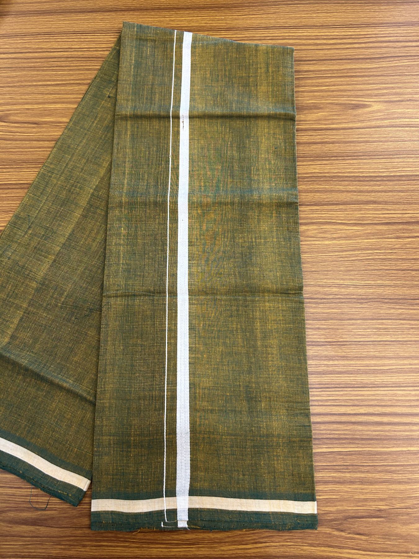 Kerala Handloom Single Hallmarked - 10% Discount !! KaithariKada 100% Pure Cotton - Mundu/Dhoti Orange Green Body - 1.5 cm White Kara - (2 meter / 4 muzham) - 53 KK8048 ELA