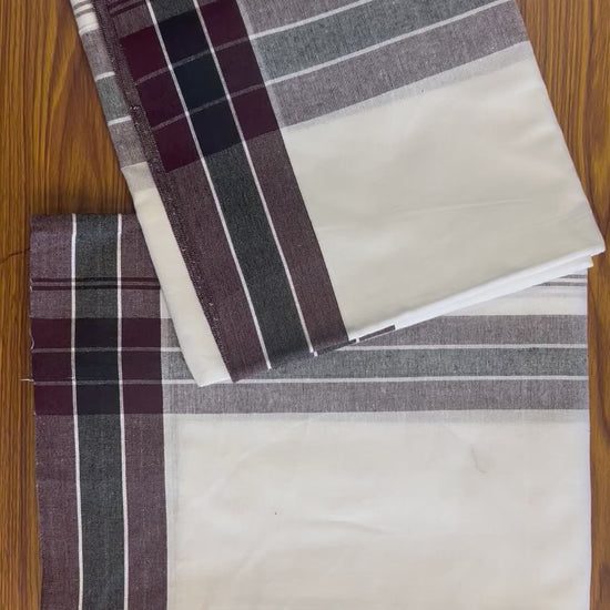 Kaitharikada Pure cotton Soft & Thick material 40s thread - Single Kaily / Lungi & Neriyath set - 4 inch Dark Maroon & Black kara - 1KK8001AS
