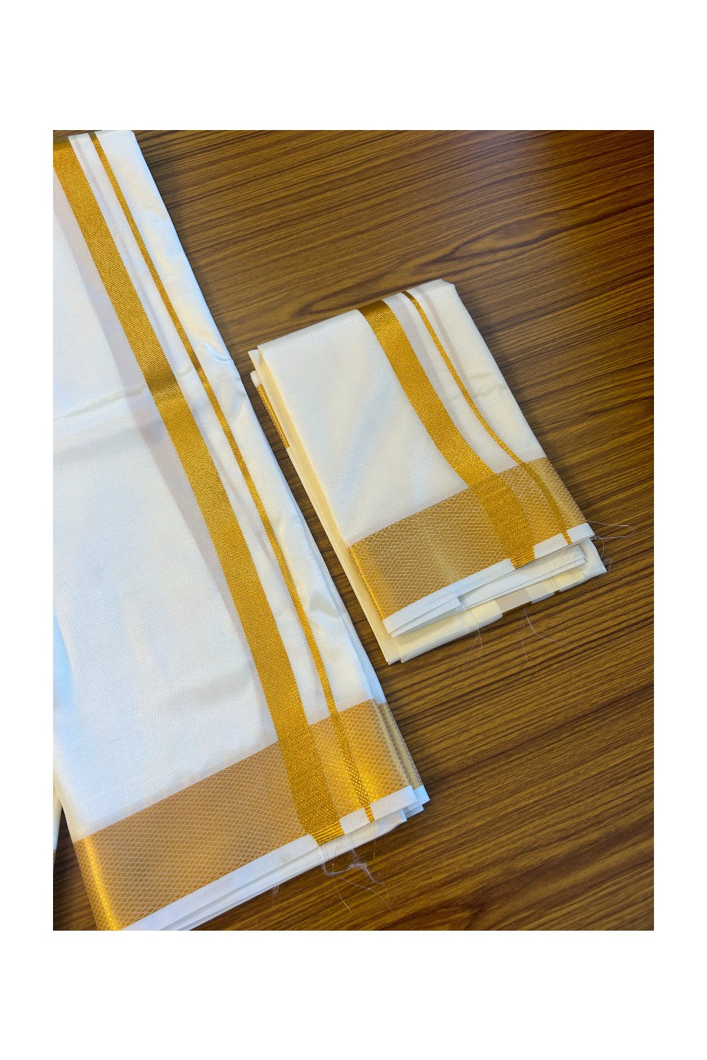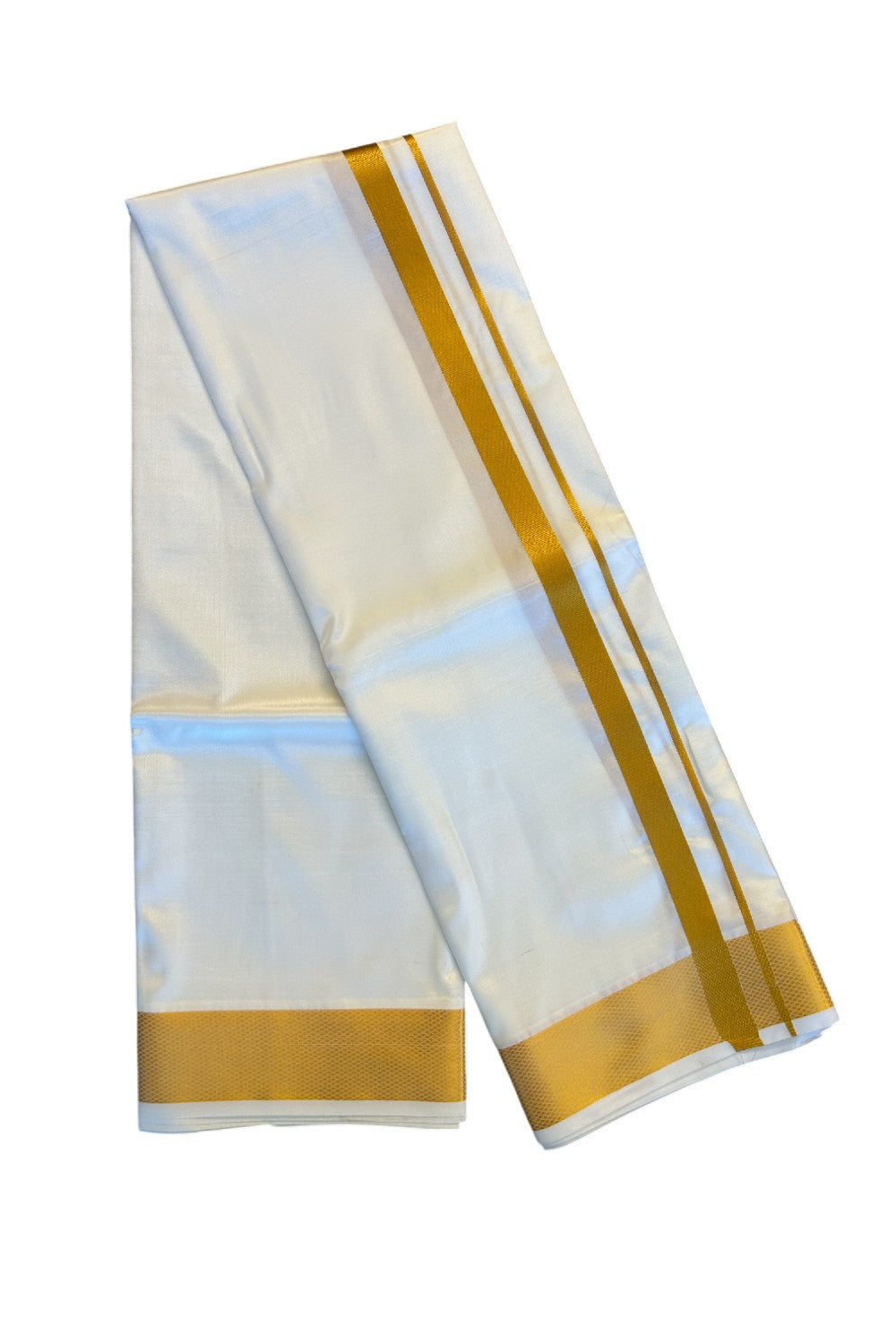 KaithariKada Balaramapuram 100% Art Silk OFF WHITE Double Mundu/Dhoti & Neriyath - 1.5inch Gold Kasavu kara - 2KK5015KAN