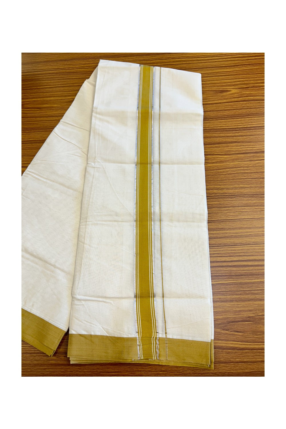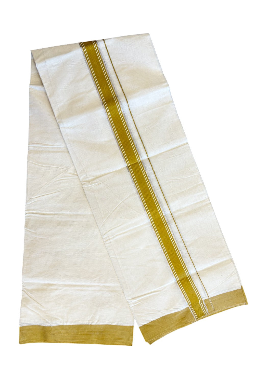35% Discount !! KaithariKada Balaramapuram 100% Cotton Double Off white -(Unbleached) Mundu/Dhoti-100x100 - 2.25inch Silver Kasavu & Mustard Yellow Striped Kara- 9KK5045ASH