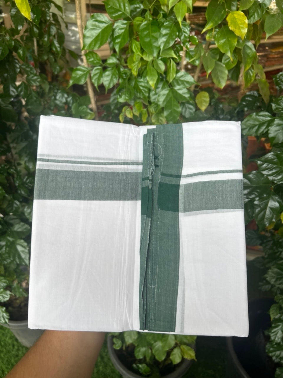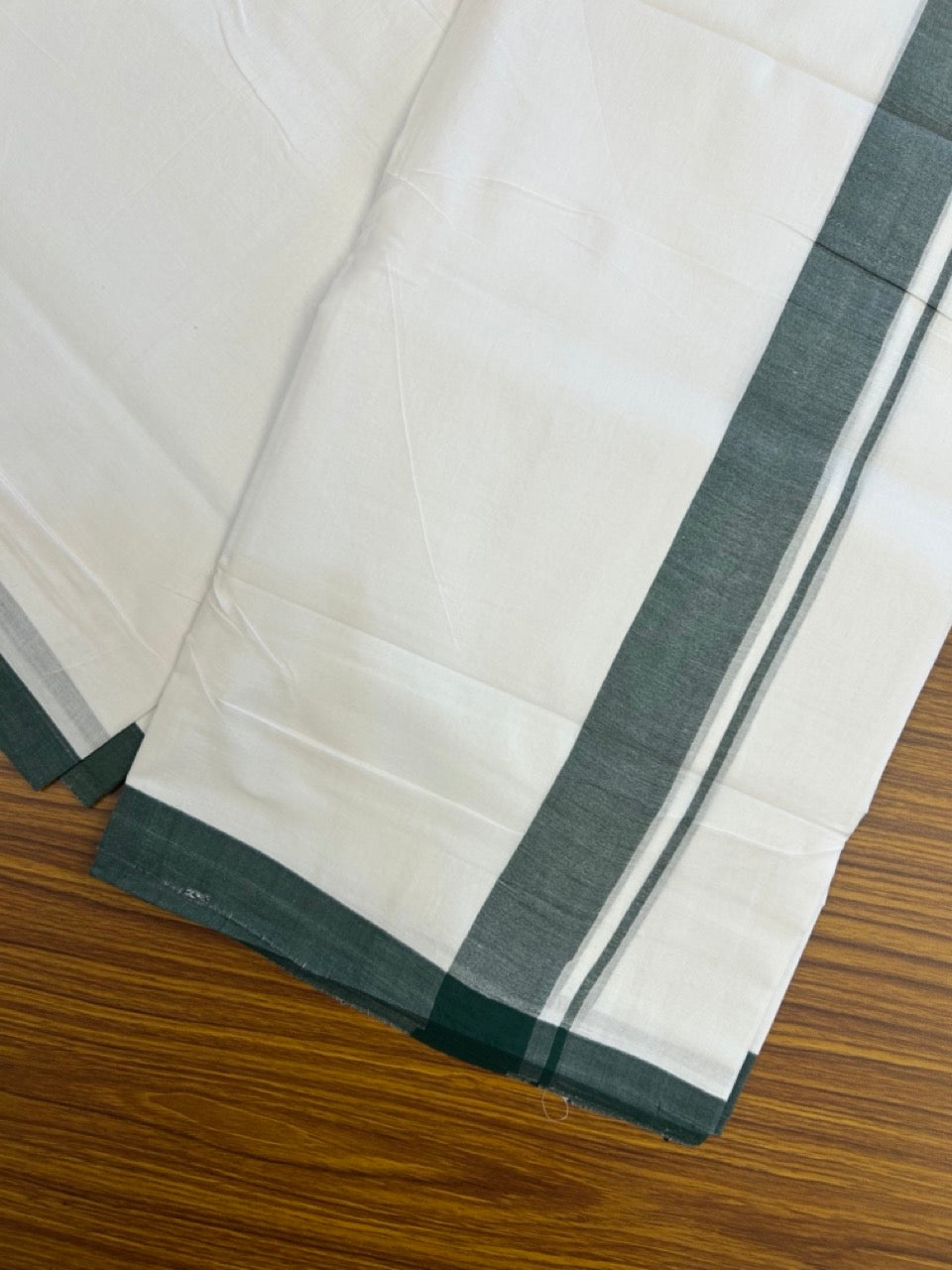 25% Discount ! KaithariKada Handloom Unakkupaavu Balaramapuram - 100% Pure Cotton Double Mundu/Dhoti Pure white - 80x90 - 1.5 inch Dark Green Mulloth Kara 4 mtr (8.5 Muzham) - 4 KK5263 YAR
