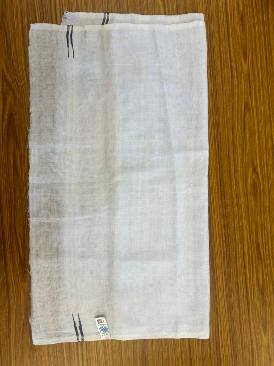 Kaitharikada - HANDLOOM Pure Cotton Kerala Towel - Thorthu - White Body & Navy Blue Chutty Kara - 7 KK5198 ELA