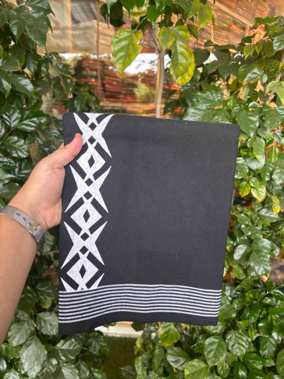 Kaitharikada - Polyster + Cotton - 20s twisted - Single Kaily / Lungi - 2 inch White Printed Kuppadam Border with Black colour body (2 meter / 4 muzham) - 4 KK8038 GAN