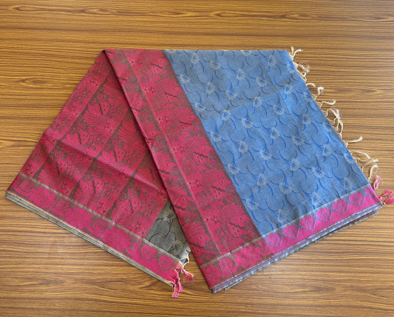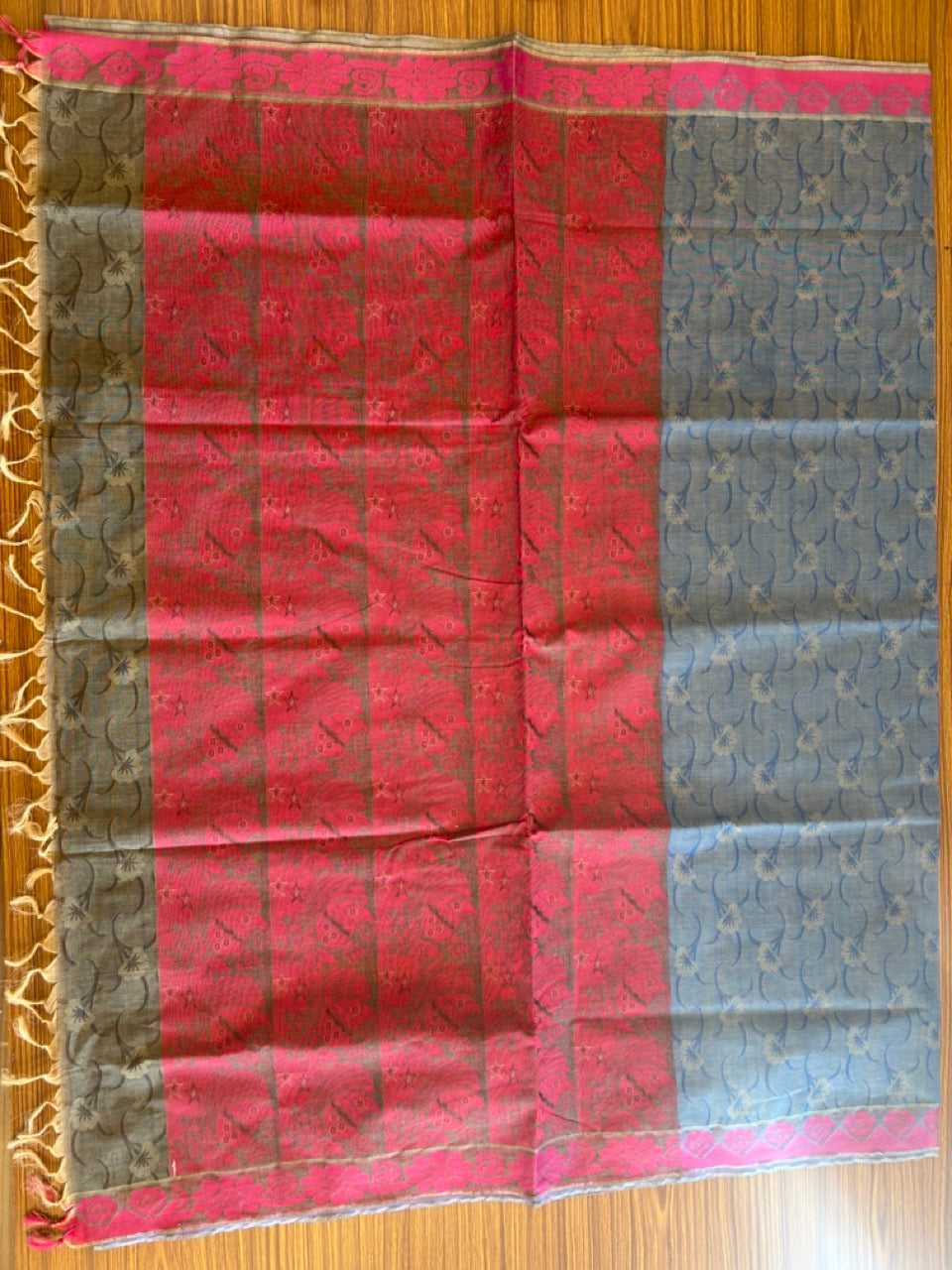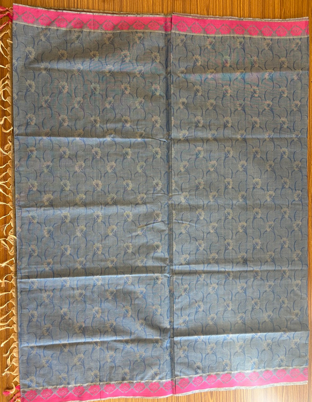 Kerala Colour Cotton Saree - Ash Blue Cream & Magenta Mango Design Kara - Kaitharikada - 5KK1007RJT