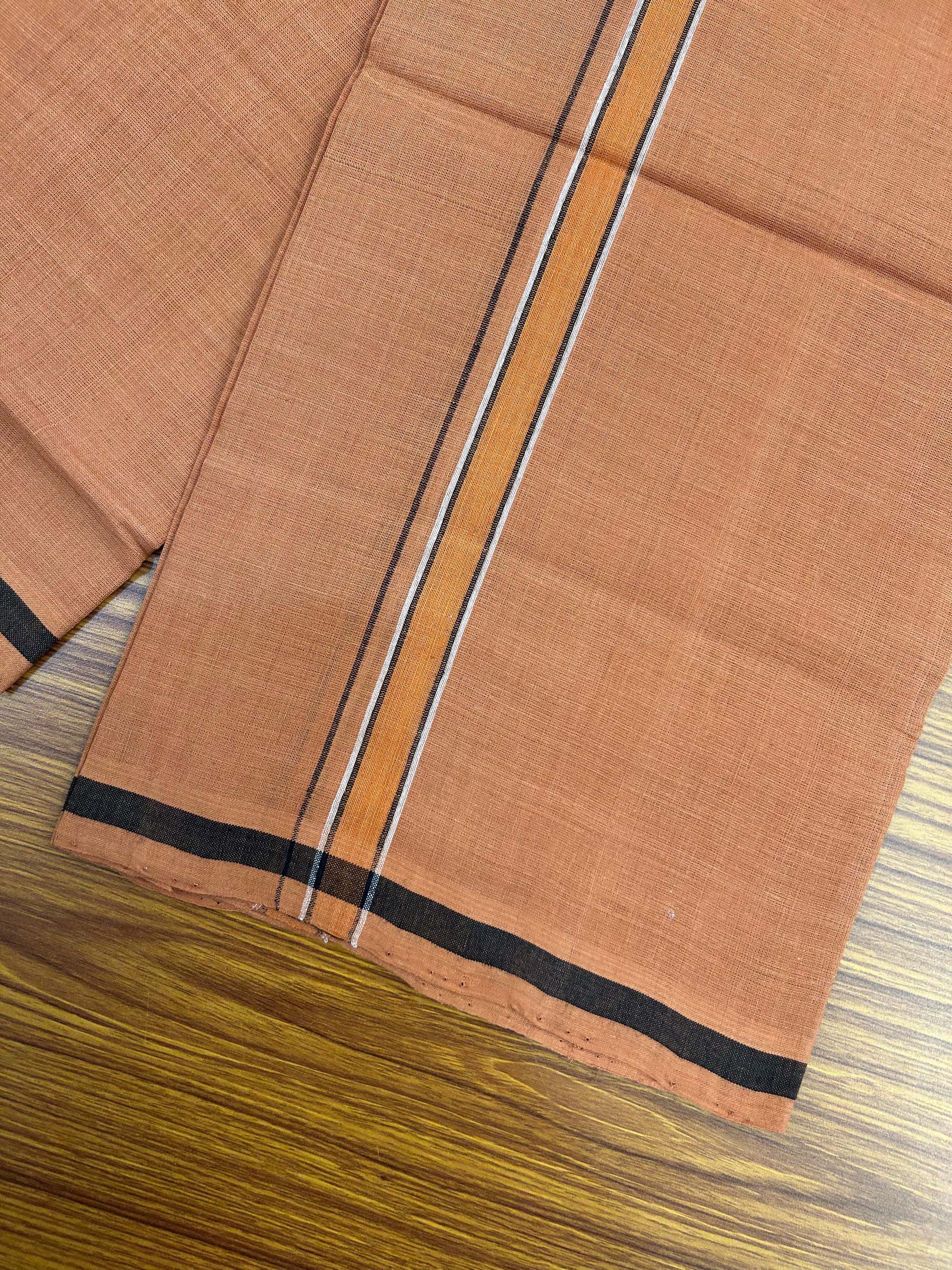 Kerala Handloom Single - KaithariKada 100% Pure Cotton - Mundu/Dhoti Kavi Body & 0.75 inch Orange Black & White Striped Kara - (2 meter / 4 muzham)- 40 KK8051 ELA