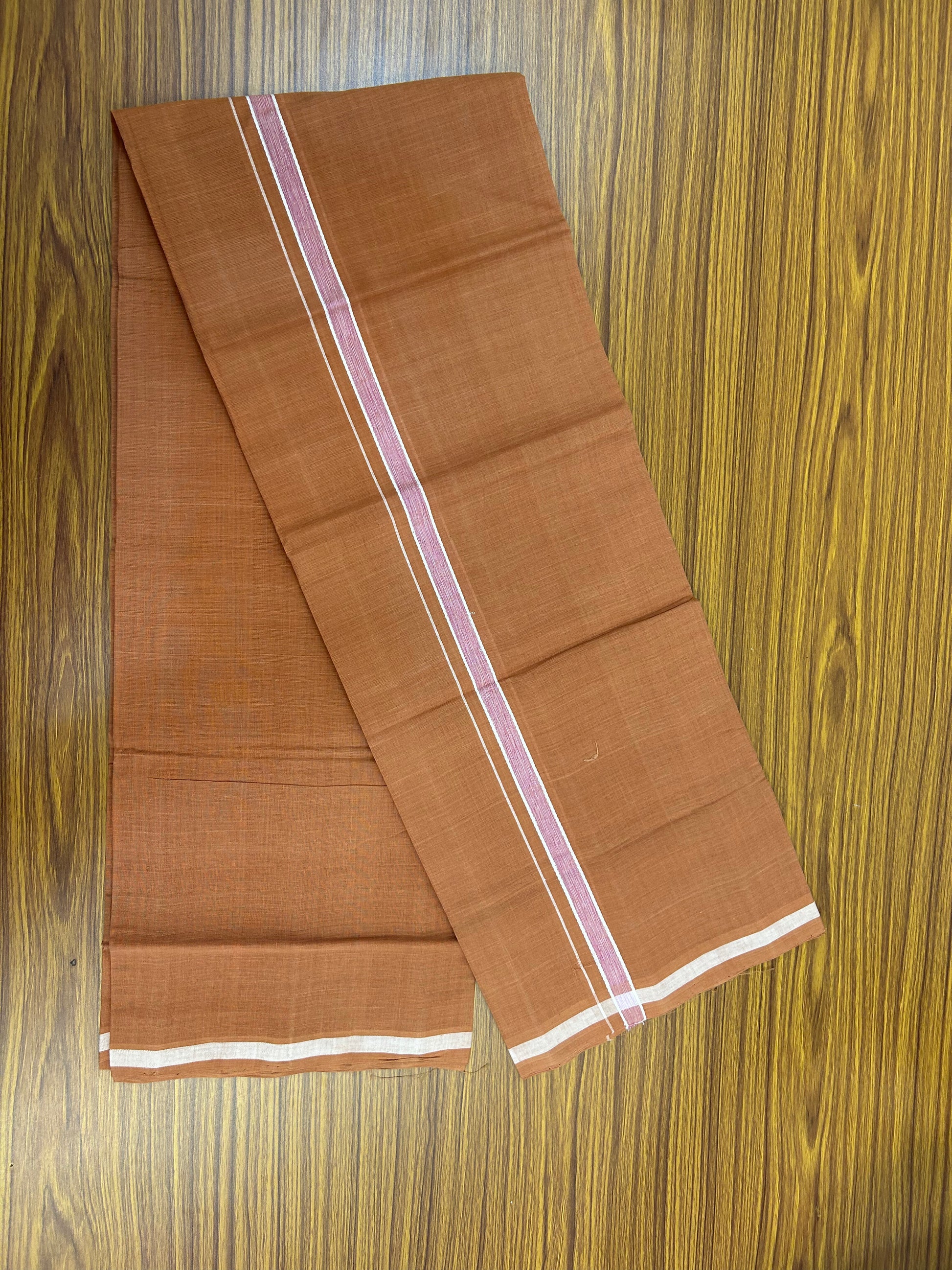 Kerala Handloom Single - KaithariKada 100% Pure Cotton - Mundu/Dhoti Kavi Body & 0.75 inch Rose & White Shaded Kara - (2 meter / 4 muzham)- 55 KK8051 ELA