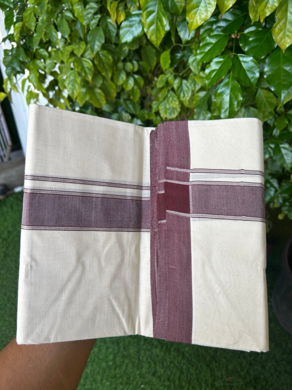 NEW !! 20% DISCOUNT!! KaithariKada Balaramapuram 100% Cotton Double Off white - (Unbleached) Mundu/Dhoti-100x80 - 1.5 inch Brown Shaded Striped KARA - 3.75 mtr (8 Muzham) - 8KK5218 ASH