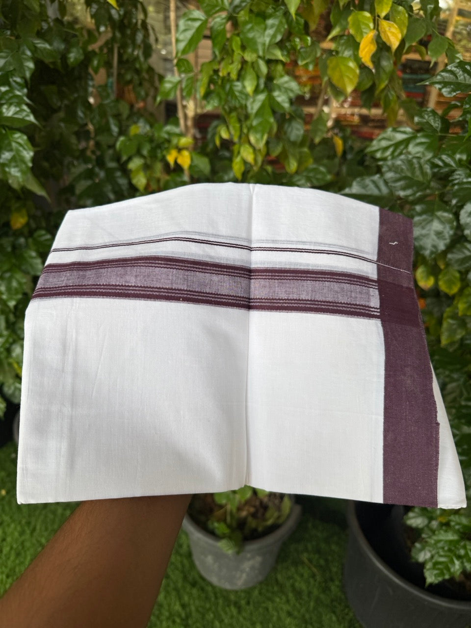 Short Dhoti Special - 28% Discount ! KaithariKada 100% Cotton Pure White Double Mundu / Dhoti - 100x80 - 45 inch Height 3.80 m Length 1.5 inch Wine Brown kara - 19 KK5258 THI
