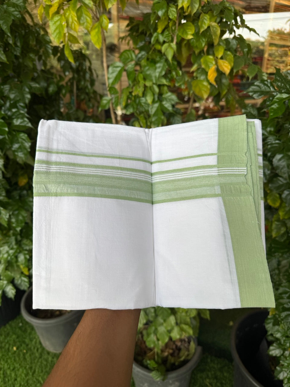 Short Dhoti Special - 28% Discount ! KaithariKada 100% Cotton Pure White Double Mundu / Dhoti - 100x80 - 45 inch Height 3.80 m Length 1.5 inch Light Green kara - 22 KK5258 THI