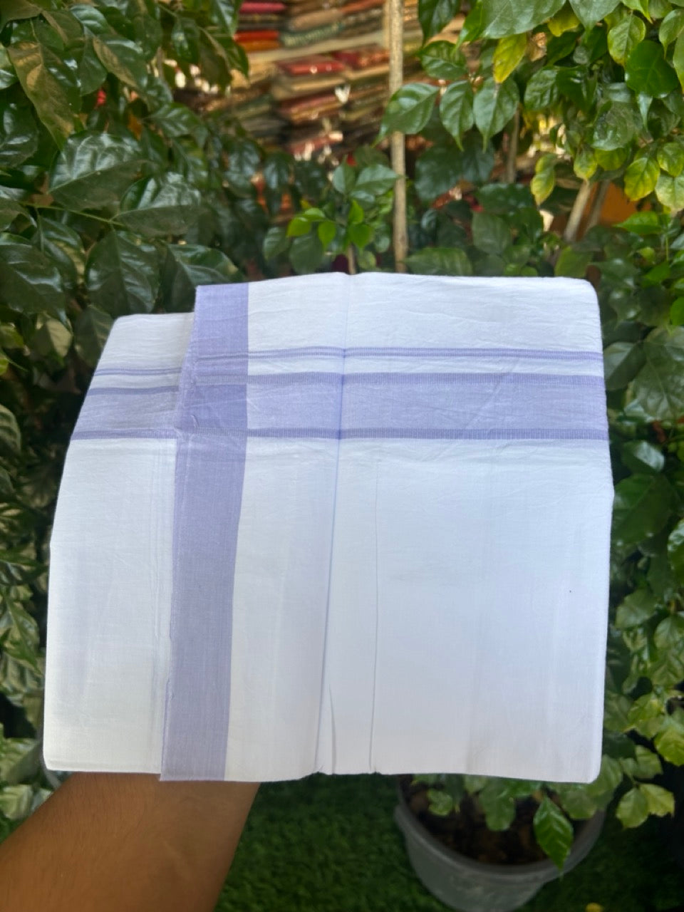 Single Pure white - Kaitharikada 100% Cotton 40s Thread Mundu / Dothi - 1.25 inch Light Lavender Shaded Kara (2 meters / 4 mulam) - 19 KK5298 SKM