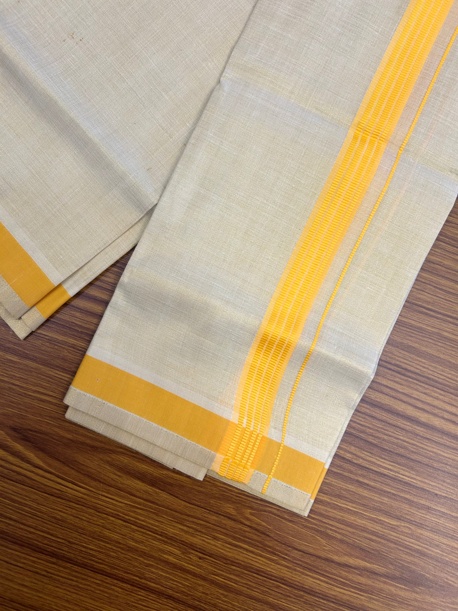 Single Tissue - KaithariKada Balaramapuram Tissue Single Dhoti/Mund Mixed Cotton - 70x30 - 1.25 inch Gold Kasav & Light Yellow Stripes Kara (2 meter / 4 muzham) - 208 KK5361 PMC