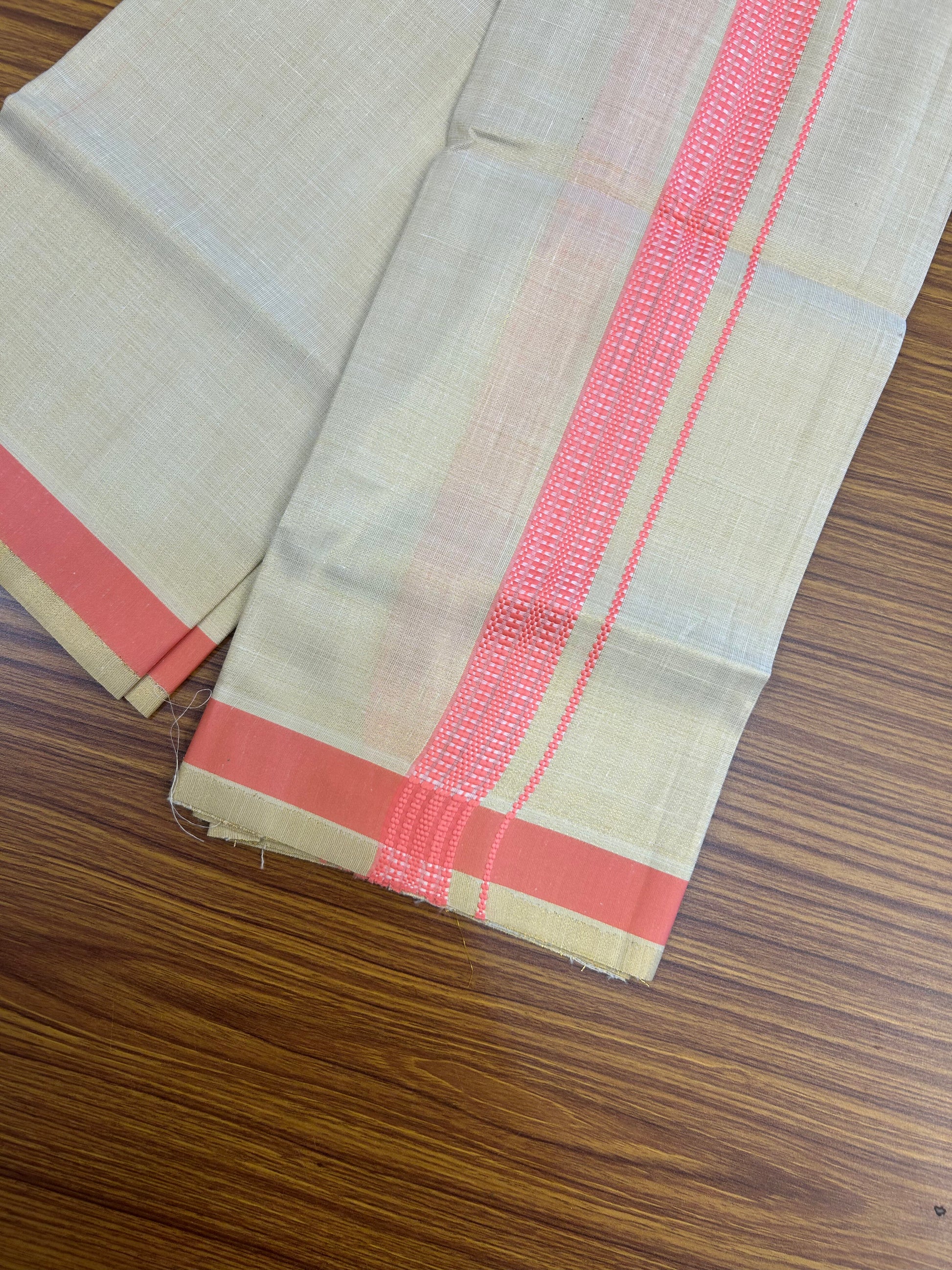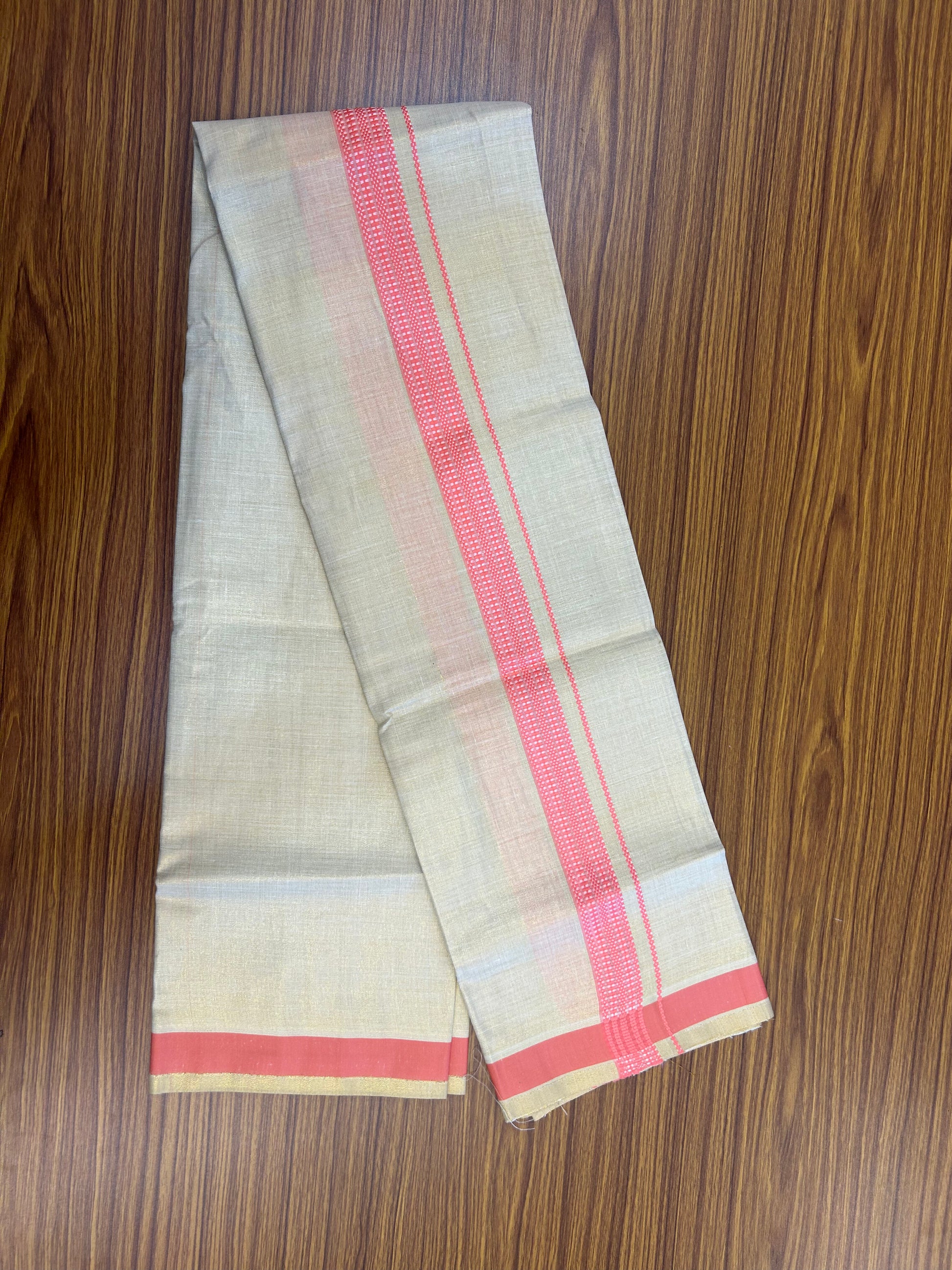 Single Tissue - KaithariKada Balaramapuram Tissue Single Dhoti/Mund Mixed Cotton - 70x30 - 1.25 inch Gold Kasav & Pink Stripes Kara (2 meter / 4 muzham) - 209 KK5361 PMC