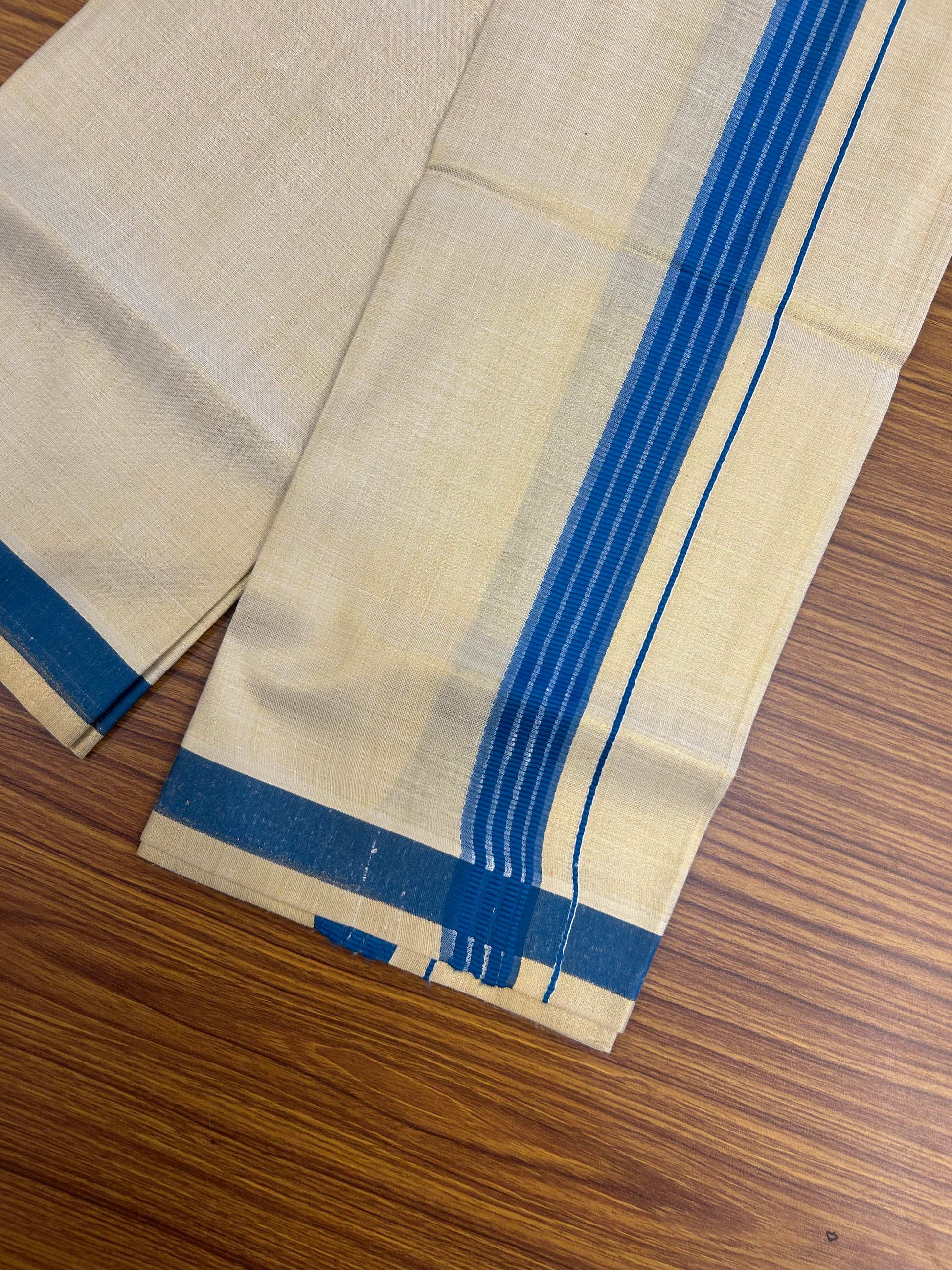 Single Tissue - KaithariKada Balaramapuram Tissue Single Dhoti/Mund Mixed Cotton - 70x30 - 1.75 inch Gold Kasav & Blue Stripes Kara (2 meter / 4 muzham) - 214 KK5361 PMC